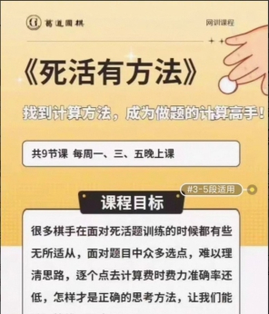 围棋视频《死活有方法》由葛道金牌教练郑子健职业二段讲解。共计9课视频,含pdf文 >>全文